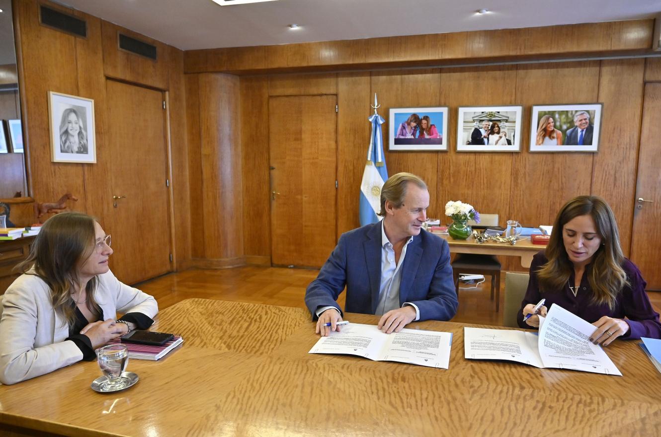 El gobernador Gustavo Bordet y la ministra de Desarrollo Social, Victoria Tolosa Paz, firmaron el convenio por el que el gobierno nacional incrementa el aporte para las políticas alimentarias en las escuelas entrerrianas. Actualmente la provincia aporta el 63% y Nación el 37%, informó el gobierno entrerriano.